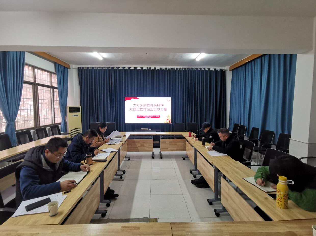 12月5日下午,学院党委理论学习中心组在学院会议室举行“第一议题”集体学习,本次集体学习内容为《大力弘扬教育家精神 为建设教育强国贡献力量》。学院全体党委委员参加了学习。本次集体学习由院党委书记宋洁主持。