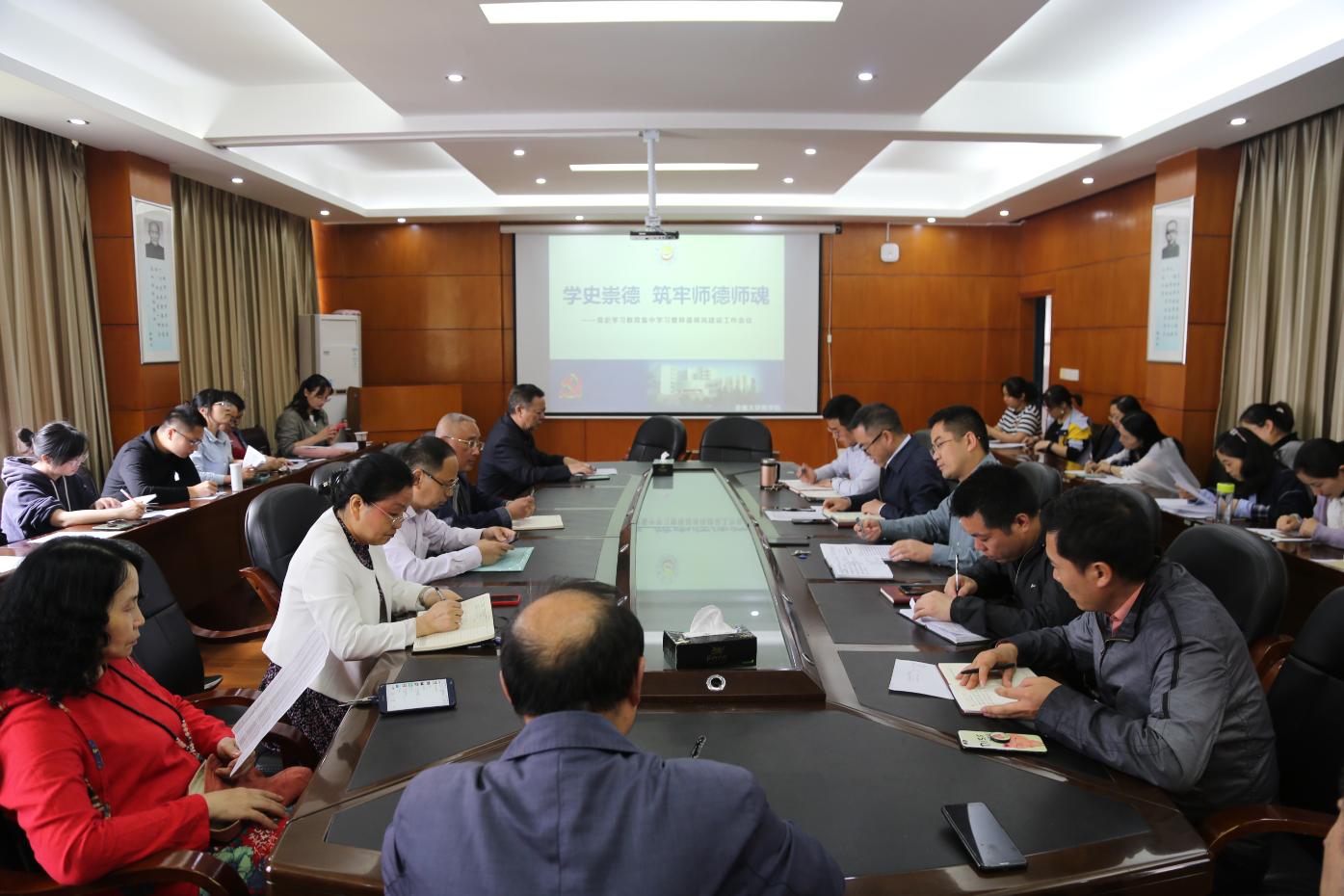 5月19日,学院在院会议室开展党史学习教育集中学习暨师德师风建设工作会议。学院全体教职工出席会议,会议由院党委副书记胡锦湘主持。