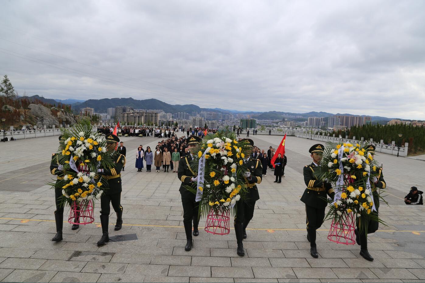 青松翠柏,长空流岚。学院全体师生党员与入党积极分子怀着无比崇敬的心情在吉首市烈士纪念碑前庄严肃立。在肃穆的《献花曲》中,以“中共英国365集团公司委员会”、“中共英国365集团公司委员会教工支部”、“中共英国365集团公司委员会学生支部”名义敬献的花篮被摆放在纪念碑基座上,院党委书记宋洁、院长丁建军、副院长龙海军集体上前整理花篮缎带。