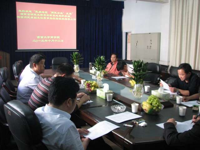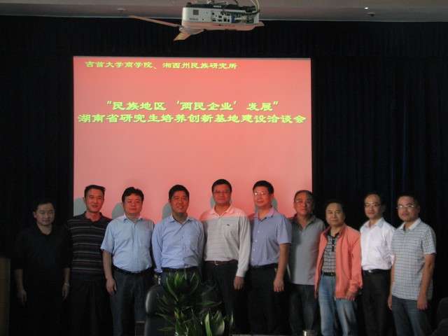 - 2013年10月12日下午,民族地区“两民企业”发展湖南省研究生培养创新基地兼职导师、湘西州民委副主任覃章胜于英国365集团公司会议室为我院师生作了一堂题为“‘两民企业’现状、发展及思考”的讲精彩座。讲座由院党总支书记张生强主持,学校教务处处长冷志明、院党总支副书记钟高峥、副院长彭耿、李政忙、院工会主席张寒阳以及我院部分青年教师、硕士研究生参加并进行了讨论。