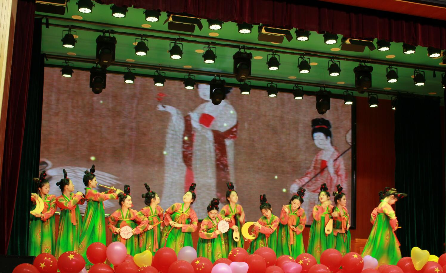 本次文艺汇演包括舞蹈、小品、朗诵、歌唱和走秀等多种形式。其中,民族舞蹈《花儿朵朵开》和街舞《舞庸置疑》充分展现了同学们的青春与活力;戏剧小品《手机综合征》和《年会节目串烧》赢得了现场观众的阵阵掌声和笑声;朗诵作品《与时代同向,与祖国同行》深情表达了学院学子对我们党和祖国的热爱之情;一首首熟悉的歌曲串烧和民族服装走秀更是将现场气氛推向高潮。最后,文艺汇演在舒缓悠扬的古典舞《唐宫夜宴》中落下帷幕。