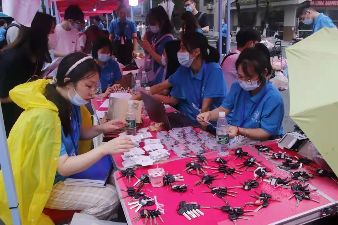 君去我愿送,君来我自迎;待到辞君日,你我更相亲。一届又一届的学生面孔虽不相同,但我院领导老师们却热情如初:安排迎新、指导工作、询问情况、下寝看望,在这暑气未消的日子里,他们湿了衣襟,却内心澎湃,只为等到你----2021级的孩子们。