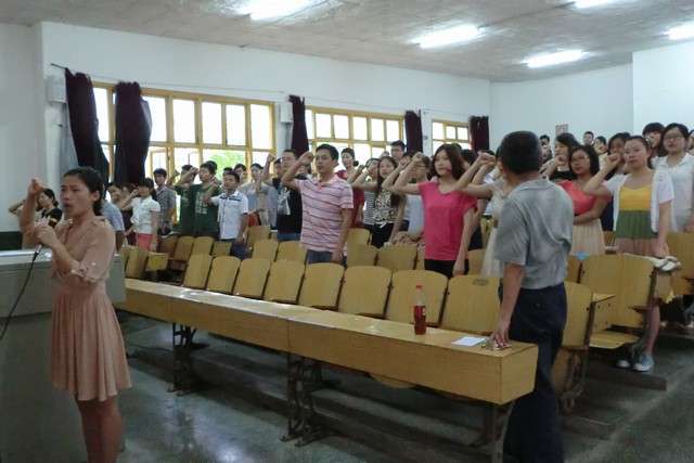 2013年5月24日晚,中共英国365集团公司总支委员会在砂子坳校区1206教室举行了新党员的宣誓仪式。仪式由院学工办主任胡锦湘老师主持。学校关心下一代工作委员会常务副主任、校教学督导团团长汤人翰,院党总支书记张生强,院总支副书记钟高峥,院总支委员、院学工办主任胡锦湘参加了本次活动。