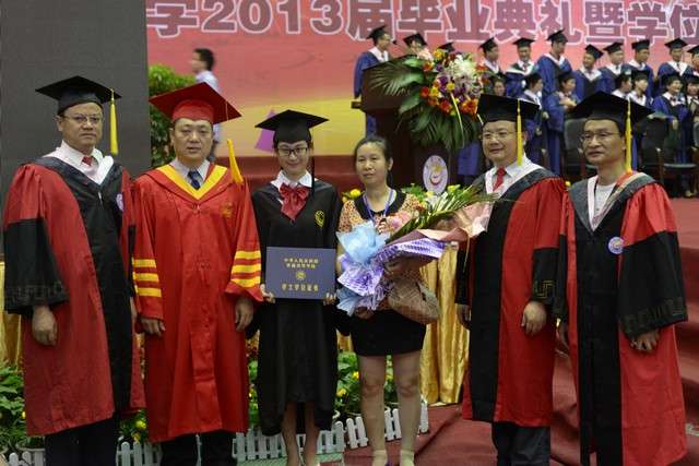 6月8日下午,我院在砂子坳校区体育馆举行了2013届毕业典礼暨学位授予仪式。我院874名学士、41名硕士依次踏上象征着成功与喜悦的红地毯,由校学位评定委员会主席、校长肖湘愚教授亲自为每个学生颁发学位证并合影留念。