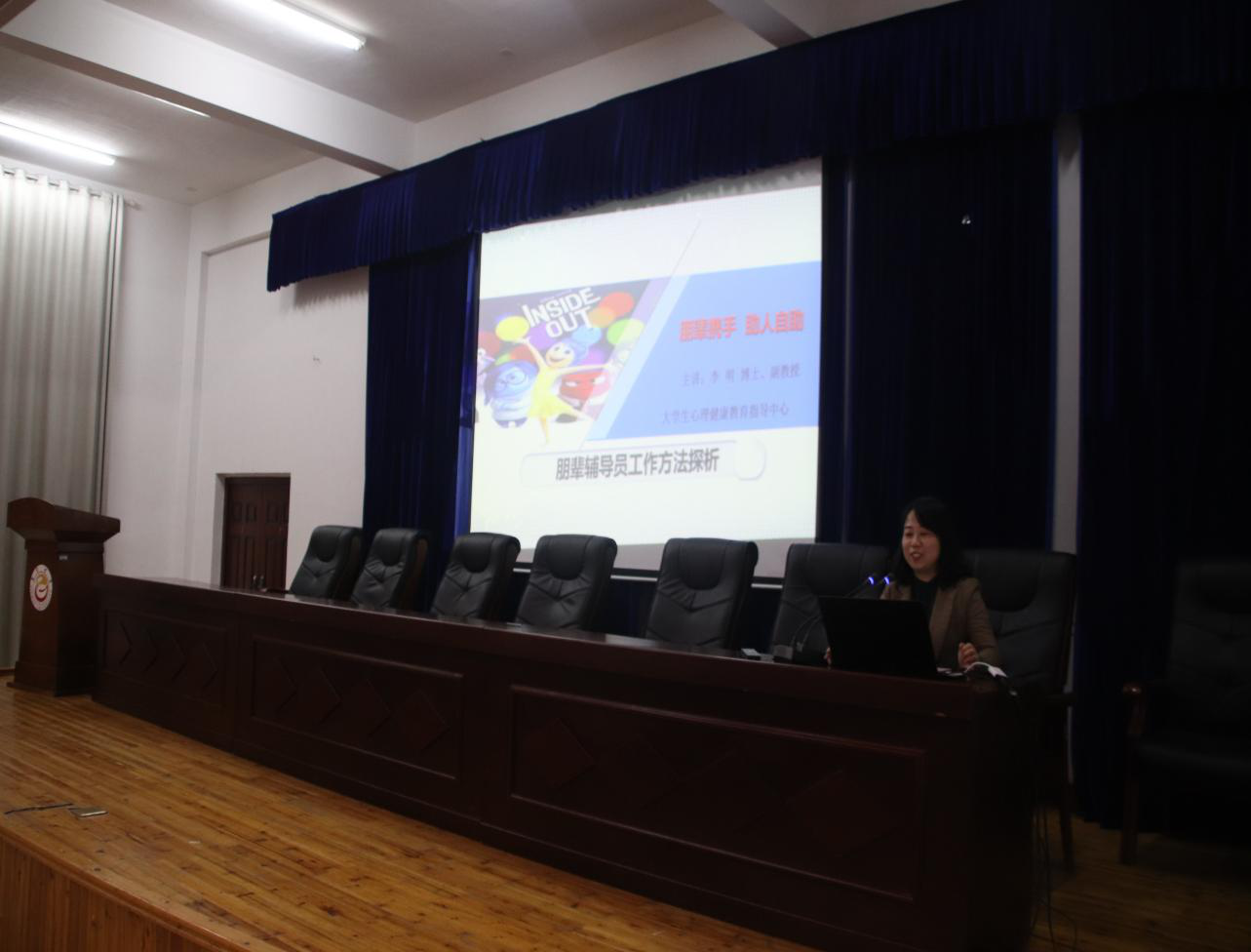 为不断充实基层心理援助与危机干预力量,完善学校心理健康教育工作体系及学生心理危机预防与干预机制,以便有效做好学生心理健康问题预防工作,10月26日晚,我院在校工会三楼会议室举办朋辈辅导员培训讲座。讲座邀请了英国上市官网365心里健康教育中心主任、中山大学博士李明副教授作为主讲嘉宾。