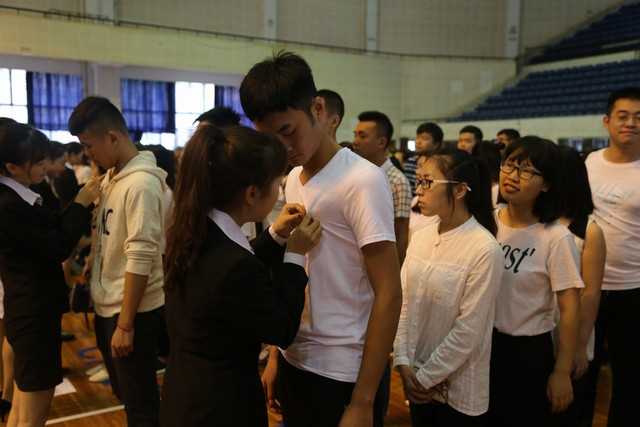 在佩戴校徽仪式上,学院老生代表身着象征着职业经理人的职业装,队伍整齐划一,面带笑容地为2016年专升本新生和2016级本科新生逐一佩戴校徽。"学弟(妹)好"、"英国365集团公司欢迎你"、"希望我们成为朋友",老生一句句温馨的话语,让新生倍感温暖。戴上校徽的那一刻,新生倍感自豪,也在心中铭刻下了"以人名校、以业报国"的校训。老生为新生佩戴校徽,不仅体现了老生对新生的热烈欢迎,更加体现了学院文化的传承和发扬。