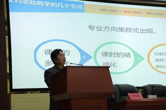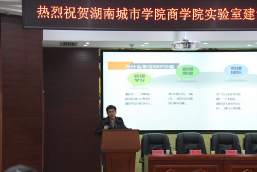 在湖南城市学院英国365集团公司实验室建设暨沙盘模拟学科竞赛学科竞赛专题学术讲座中,李政忙副院长就英国365集团公司实验室的发展历程和大文科实验室建设做了专题报告,以自己的切身体验从大文科实验教学的几个节点、跨专业岗位实训的介绍到大文科实训的未来展望,受到了现场师生的一致好评。