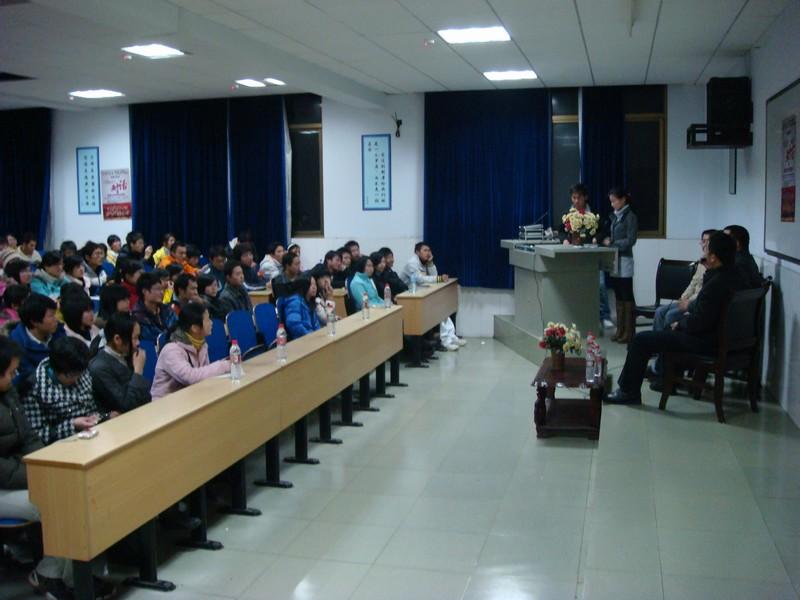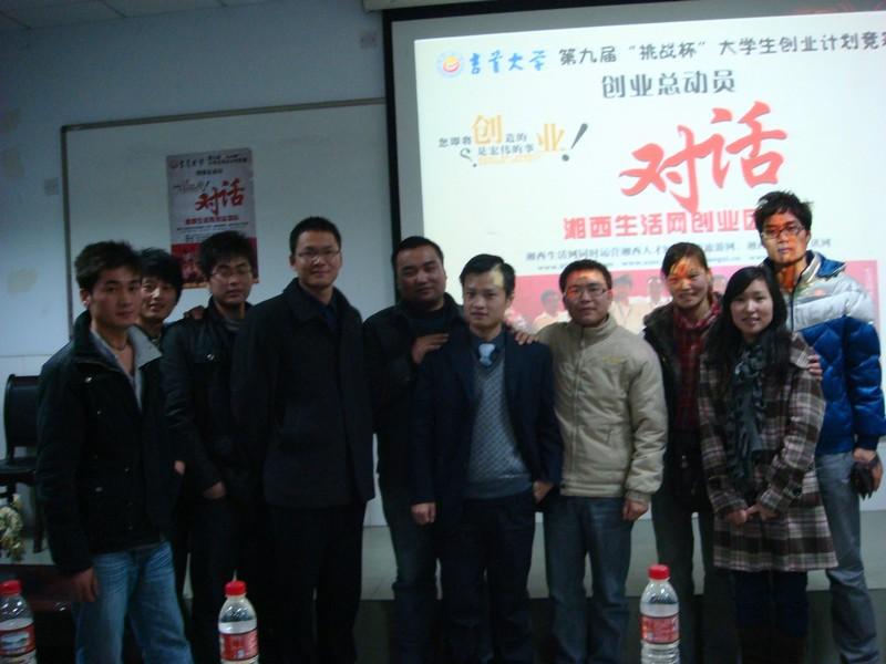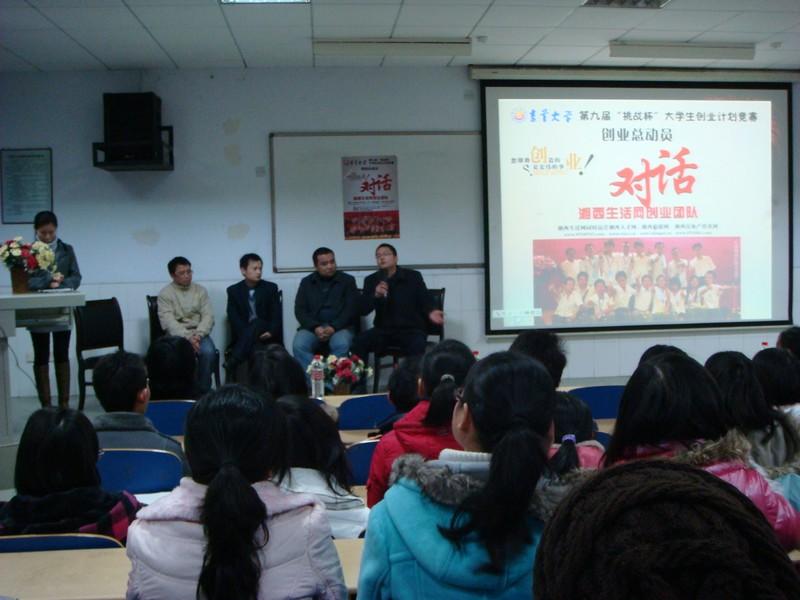 2009年12月11日晚,我院团总支在砂子坳校区举办“创业大赛赛前经验交流会暨动员大会”。本次交流会采取对话的方式,对话由范宇主持,并邀请了湘西生活网的四位主要负责人李跃华、邹武华、张杨、颜亮,英国365集团公司团总支书记周琴等老师参加了大会。
