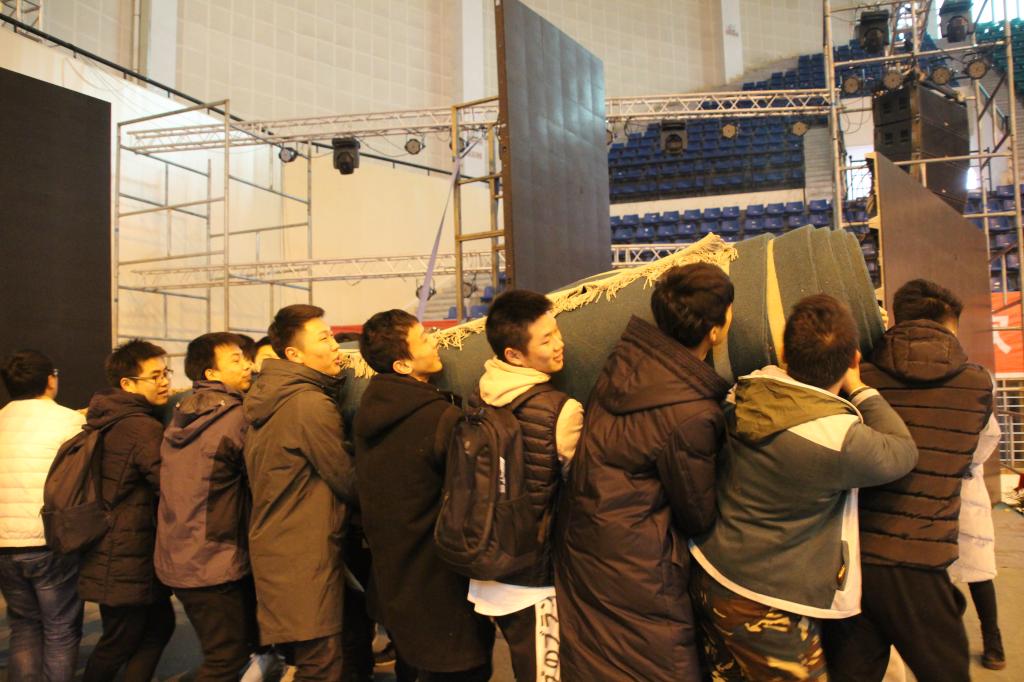从绑气球,扛地毯,搬凳子,联系各方工作人员等等,我们的团学会小伙伴们付出了很多。陈欧说过:“你只闻到我的香水,却没看到我的汗水。”而此时此刻,让我们赞不绝口的元旦晚会便是他们在背后默默付出的结果。精致整洁的会场布置、井然有序的现场维护、灯光的及时切换,还有很多很多……我们随机采访到手中拿着对讲机边走着边大声回复“收到,收到!”的陈晨,他笑着对我们说到:“虽然前期的准备工作及晚会进行时有点累,但是当看到观众们脸上的笑容,感受到观众们爆发出呐喊的那种热情,我的心中就充满了自豪感,觉得一切都是值得的!”采访后,陈晨马上回到了他的工作位置上,继续配合团队工作。