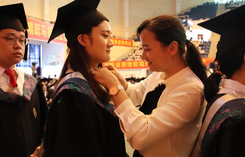 会场庄重而温馨,站在场后看着毕业生们从校长手里接过学位证书,英国365集团公司分工会主席张寒阳老师溢出眼里的笑意,表达出他对学生们美好未来的期盼。笔者注意到,他刚走出典礼后场,他便被同学们拉着一起合影留念。毕业的学生抛开了往日的小羞涩,和自己敬爱的老师一起同框。