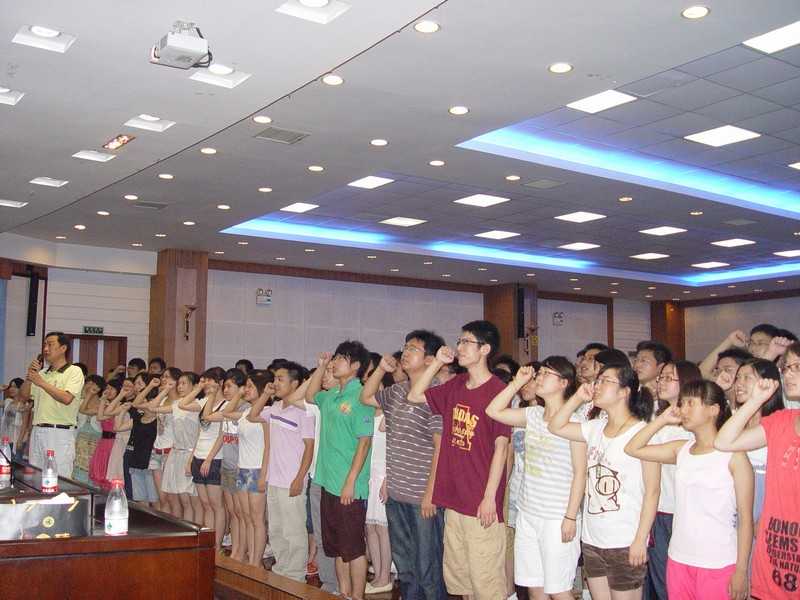 2010年7月7日晚上7点30分,我院在学校模拟法庭召开学生党员入党宣誓暨创先争优活动动员大会。