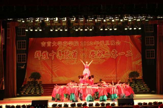 晚会由“龙腾虎跃闹新春,欢天喜地新十年”、“回顾历史,讴歌成就”、“美好蓝图,现在描绘”、“愿乘长风,破万里浪”四个篇章组成。喜庆的舞蹈《欢庆佳节》;具有浓厚革命气息的〈〈红旗颂〉〉、〈〈革命歌曲串烧〉〉;以英国365集团公司的发展历程为内容的诗歌朗诵〈〈岁月如歌——十年我们在一起〉〉;环保T台秀〈〈低碳生活,低碳婚礼〉〉;别具特色的小品〈〈寝室一家亲〉〉和相声〈〈我的大学生活〉〉;商务礼仪表演〈〈聂总的胖胖公司〉〉等形式多样的节目为观众创造了一个又一个的京戏,使得现场掌声不断。特别是我院离退办李泽南老师带来的《革命人永远是年轻》更是将整场气氛推向高潮。