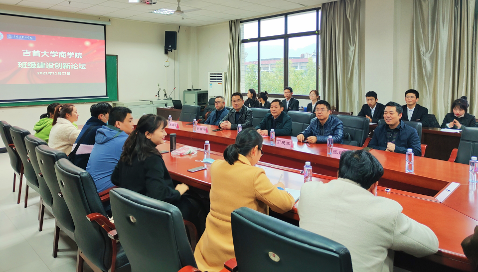11月21日上午,学院首届班级建设创新论坛在大田湾校区预科楼会议室举行。学院党政班子全体成员,学院院办、学工办、教务办全体人员和2021级本科各班班主任以及各班学生代表参加了本次论坛。