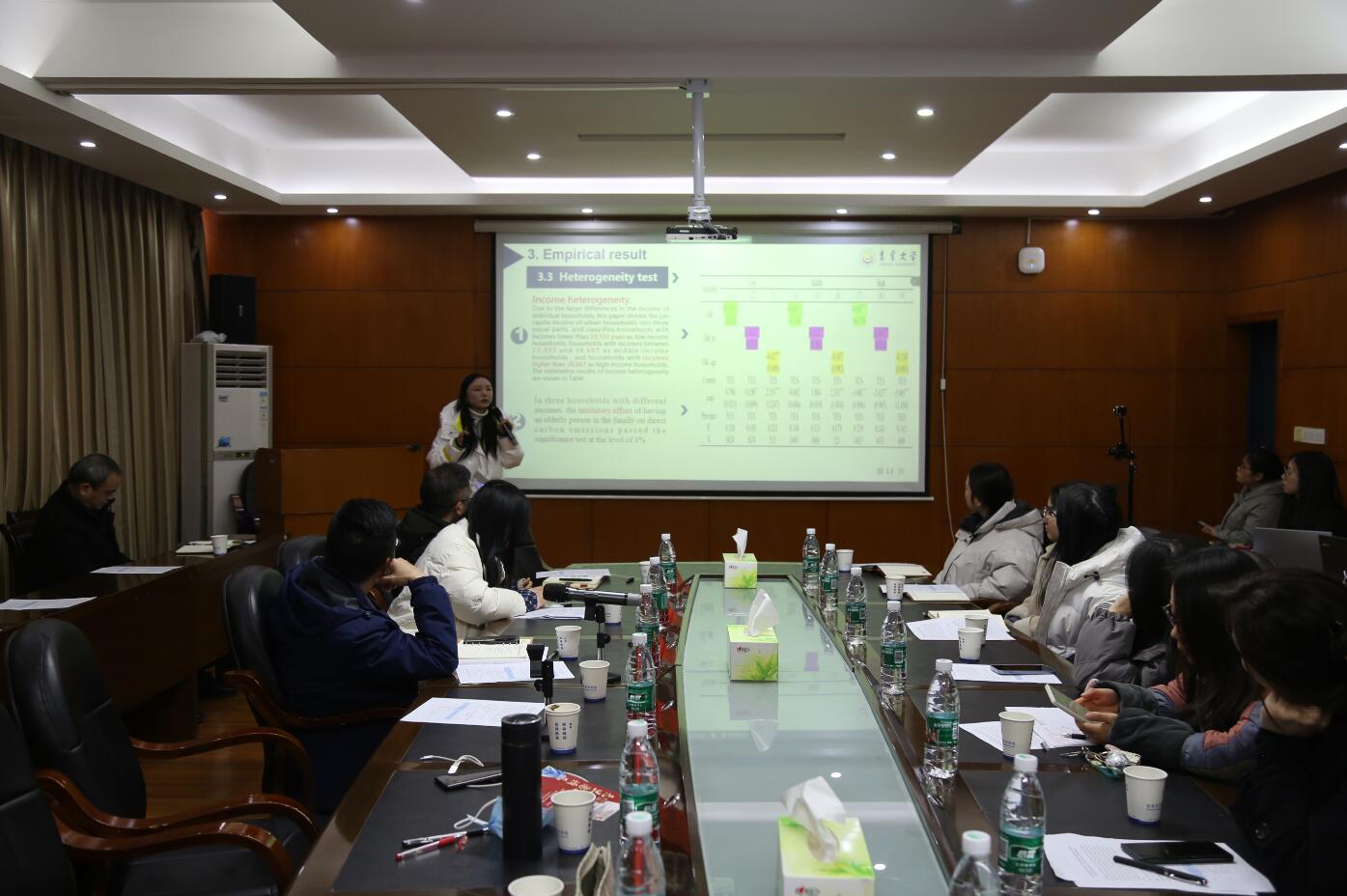 李琼教授以《Inhibition or Promotion? The Impact of Urban Household Population Aging on Direct Carbon Emissions:An Empirical Analysis Based on China's CFPS Data》为主题做了主旨报告,报告从微观视角入手,在基准回归的基础上,利用门槛模型检验了家庭人口老龄化对直接碳排放的非线性关系,并探究了不同人口老龄化阶段下家庭人口老龄化对直接碳排放的影响程度。