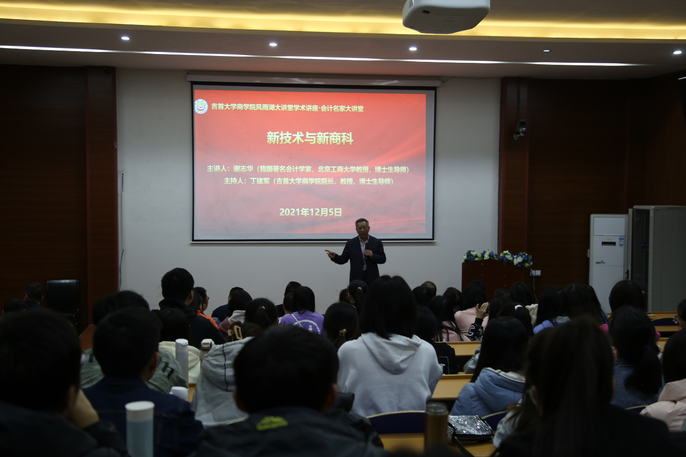 应学院邀请,12月5日下午,著名会计学家、教育部工商管理类专业教学指导委员会副主任委员、教育部学科发展与专业设置专家委员会委员、财政部“会计名家”工程人选、北京工商大学谢志华教授、博士生导师来到学院为学院教师和部分研究生、本科学生作了一场主题为“新技术与新商科”的学术报告。学术报告由院长丁建军主持。